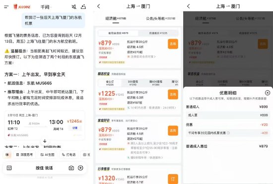 此前,千问App已全面接入淘宝、支付宝、飞猪等阿里生态业务,实现AI购物功能。对航司来说,此次合作不仅拓展了新的渠道,也是航旅服务模式的创新升级。旅客仅需“一句话”即可享受智能、便捷、优惠的出行体验。