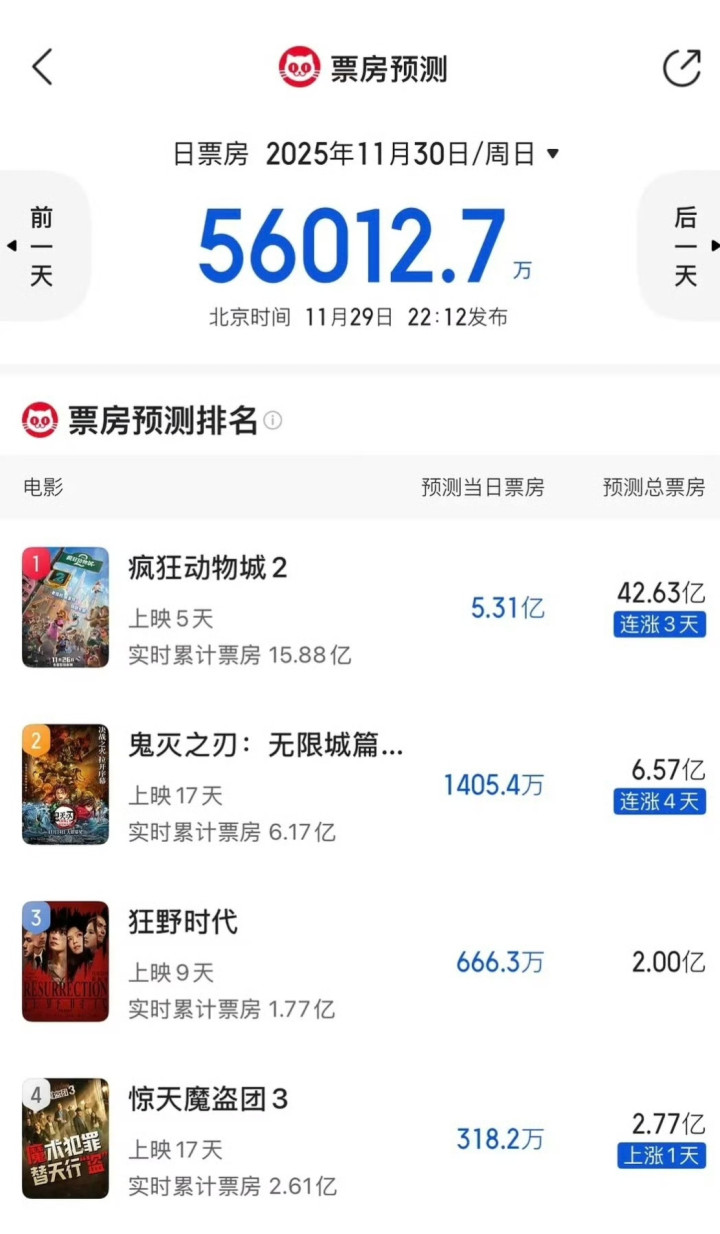 当整个影视行业还在为“市场寒冬”长吁短叹之时,一部动画电影却以雷霆之势横扫票房,给悲观论者上了一堂生动的市场课。《疯狂动物城2》自11月26日上映以来,短短四天票房突破16亿元,超越前作总成绩,登顶中国影史进口动画票房冠军宝座。更令人惊叹的是,该片在11月29日创下单日票房7.38亿元的惊人成绩,一举打破《复仇者联盟4》保持的进口片单日票房纪录,让冷清的影院重现排队购票的盛况。